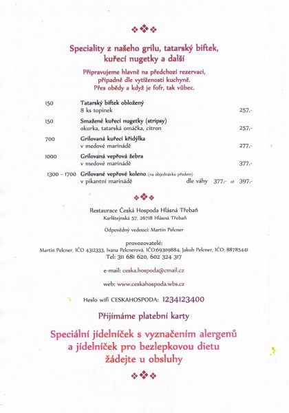 Tataráky, křídla a nugetky po předchozí rezervaci nejpozději vždy do pondělka.